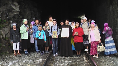 Одна из таких поездок состоялась в день памяти Собора Сибирских святых: паломники побывали на ст. «517 км», в пос. Петухов Лог, Таштагольского района. Это место памяти и скорби — оно освящено кровью Российских новомучеников. Как свидетельствуют исторические материалы, в этих местах в 1937 -41 гг. находился Шорлаг, в 1942 году переименованный в Сиблаг, и был он одним из самых суровых лагерей Советской России. Его называли лагерем смертников. Заключенные строили Таштагольскую ветку железной дороги. Условия труда были убийственными для человека – скальный грунт для тоннеля нужно было пробивать примитивными орудиями труда – киркой, лопатой, кайлом. Людей запрягали в повозки вместо лошадей, и они возили бревна, рельсы, камни. Умирали от холода, голода, непосильного труда. Очень много заключенных расстреливали, особенно священнослужителей. Очевидцы рассказывают, что среди узников было много людей, пострадавших за веру – здесь томились монахи, священники, миряне со всей страны. Много монахов было из Киево-Печерской Лавры.